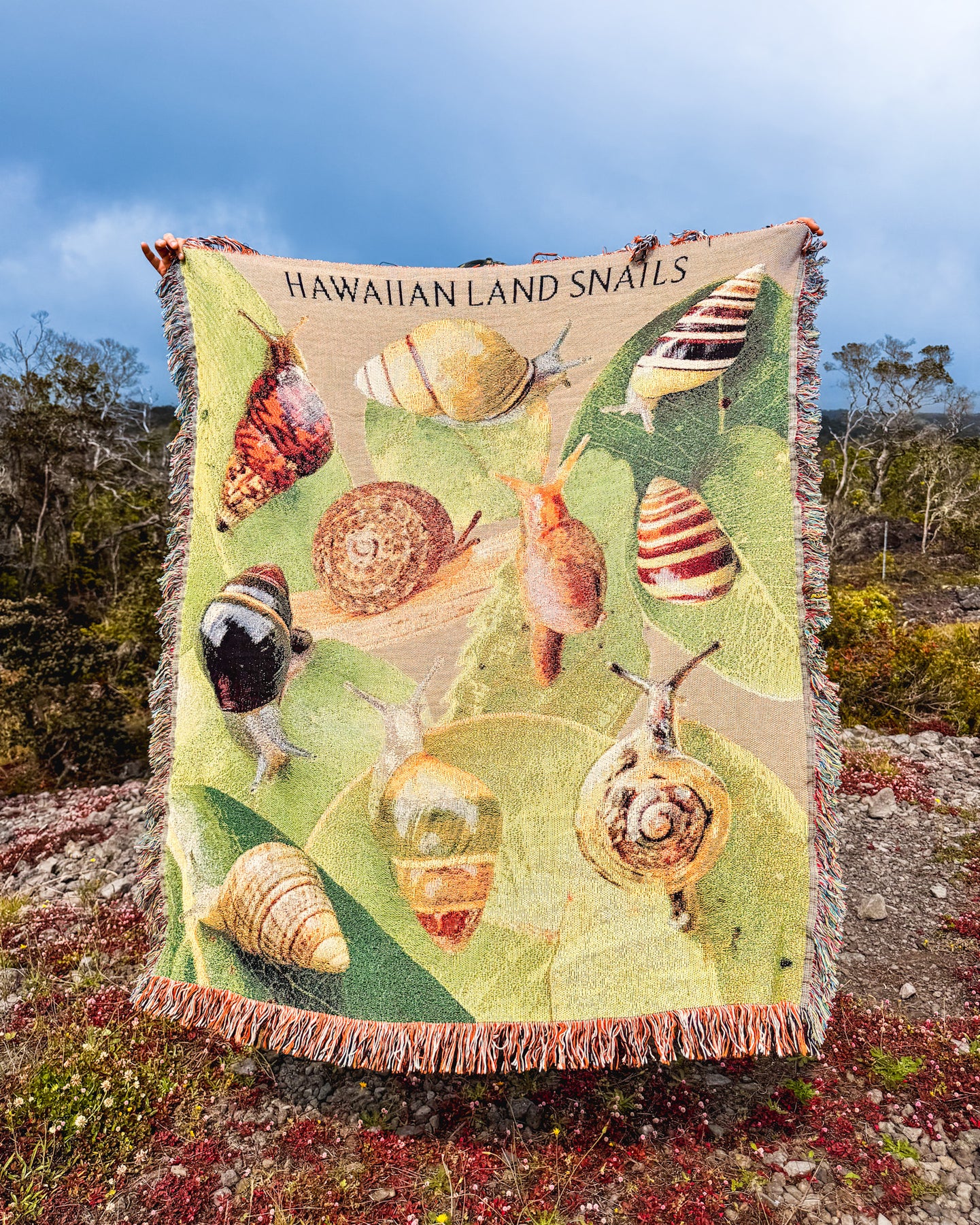 This blanket isn’t just a cozy throw: it’s a tribute to the beauty of Hawaiian land snails and a call to protect these rare forest gems. Every time you wrap this blanket around you, you'll carry a story of place, history, and hope.